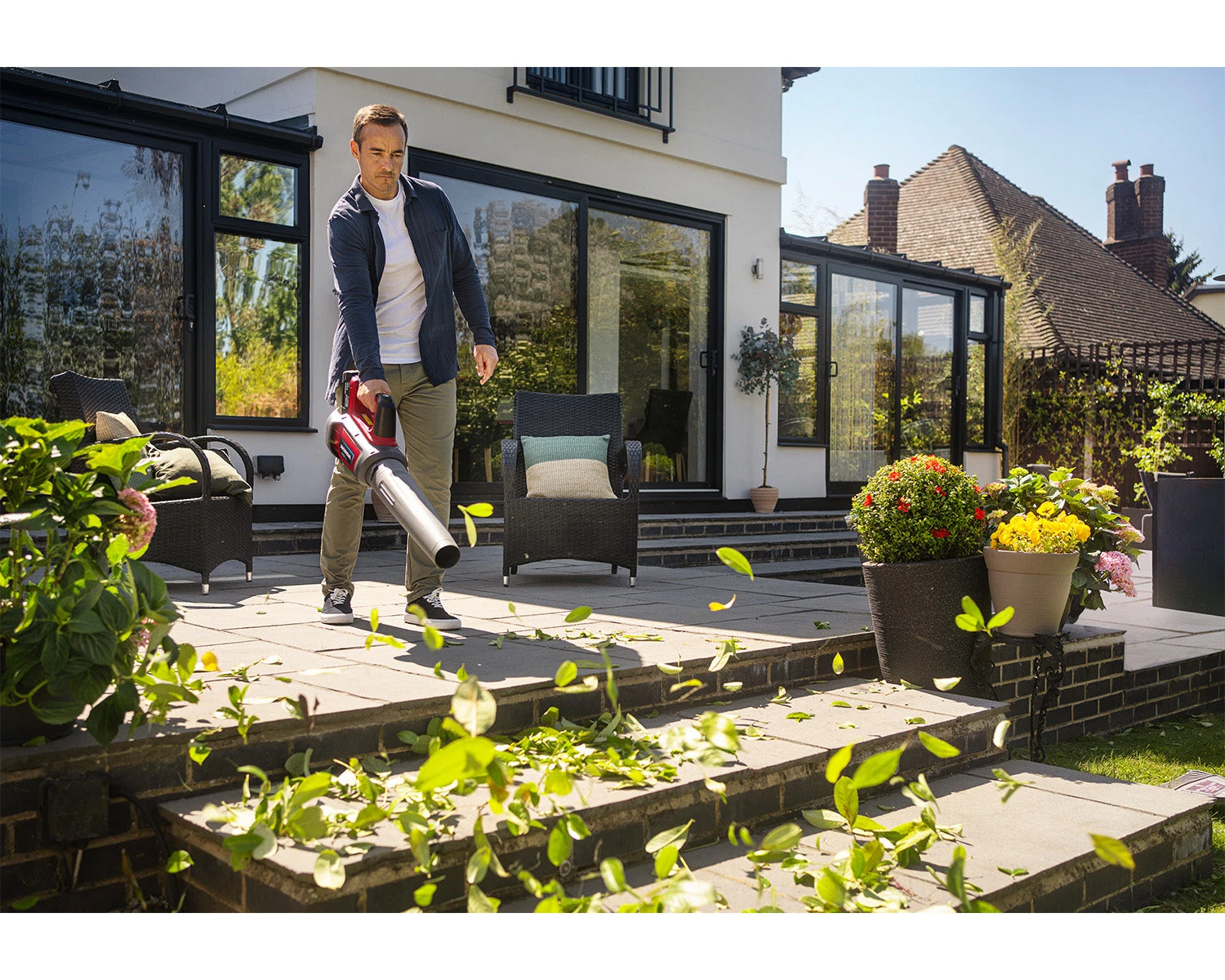 - Removes leaves from paved surfaces, driveways or pavements